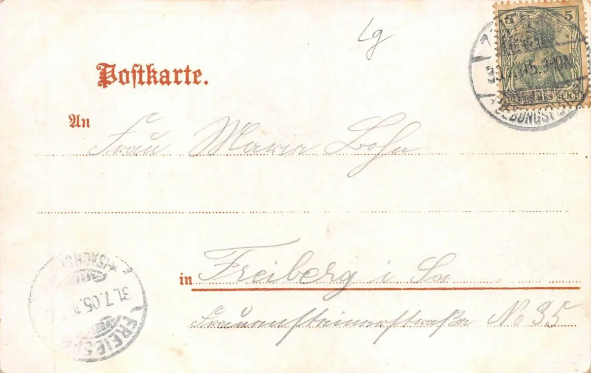Rückseite: gelaufen 1905 nach Freiberg