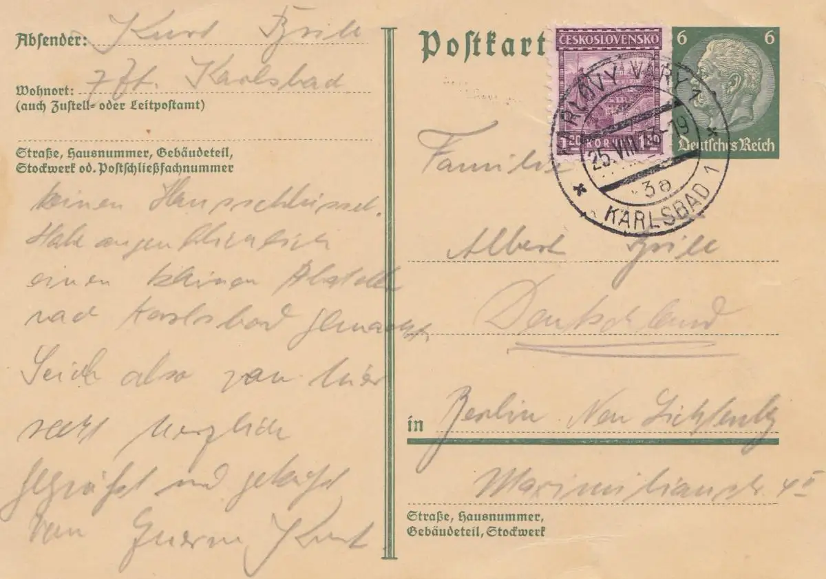 Tschecheslowakei: 1933: DR Ganzsache Karlsbad nach Berlin