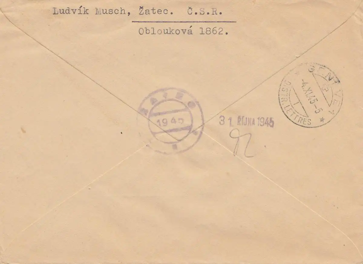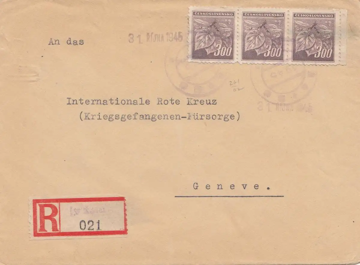 Tschecheslowakei: 1945: Einschreiben nach Genf