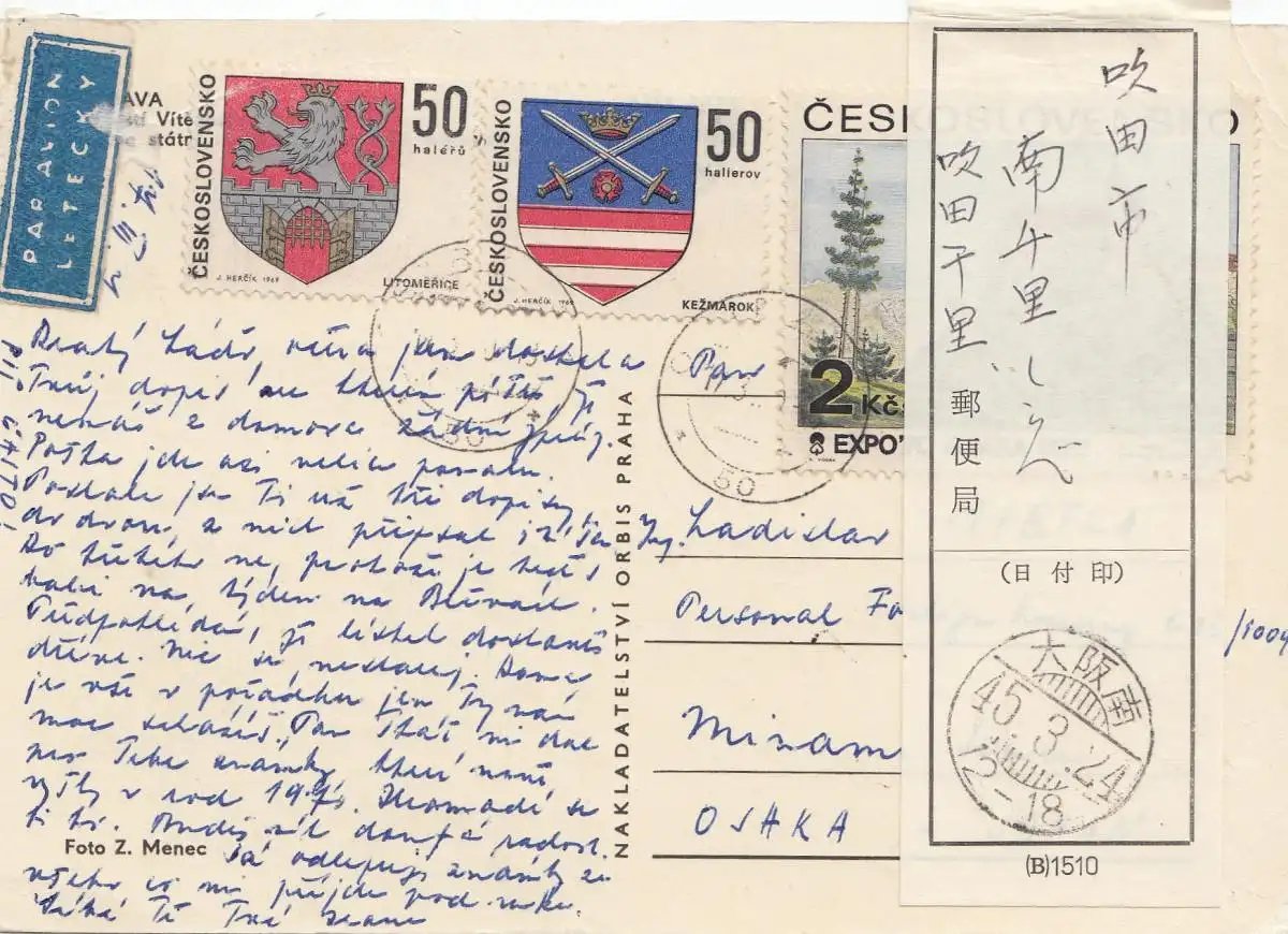 Tschecheslowakei: 1969: Ansichtskarte nach Osaka