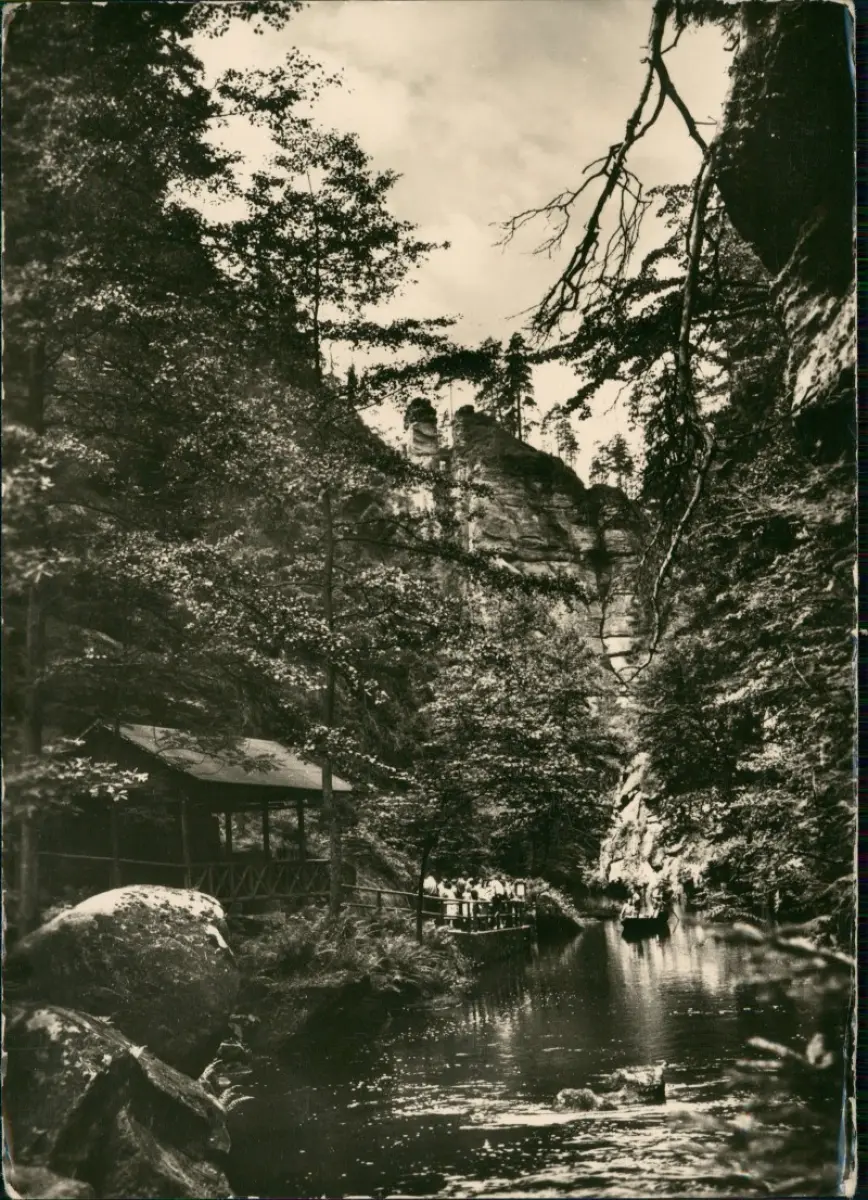 .Tschechien Údolí Kamenice - horní přístaviště člunůna jezeře 1971