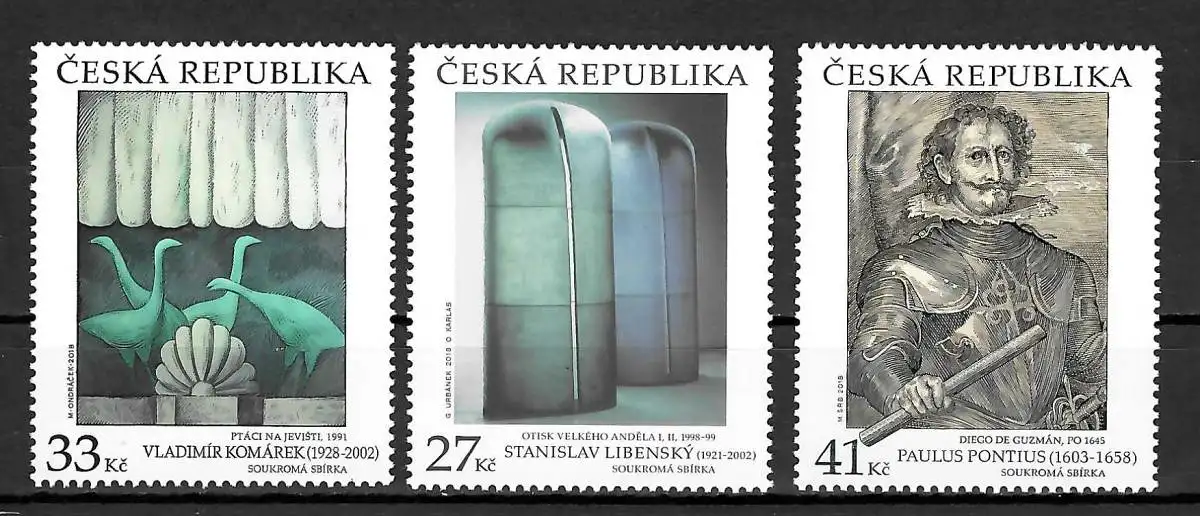 Tschechische Republik 2018: Kunstwerke Komarek, Libensky, Pontius, postfrisch