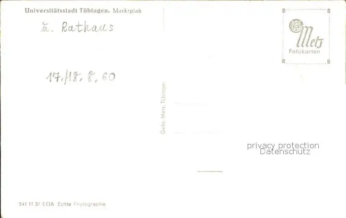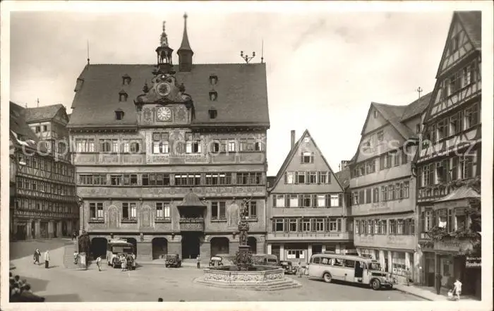 Tuebingen Marktplatz Brunnen Rathaus Tuebingen postalisch nicht gelaufen 1960 Erhaltung siehe scans Alte Ansichtskarte Postkarte WernPID4