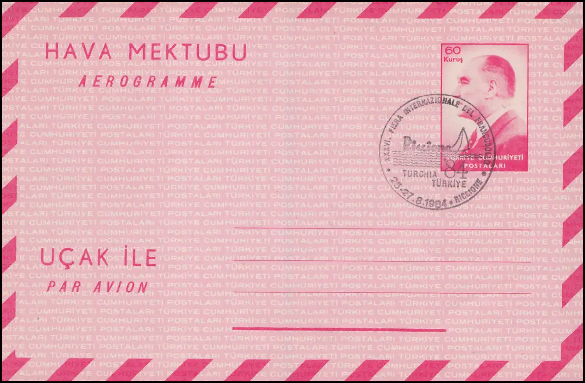 Türkei Luftpostbrief 1 Kamal Atatürk 60 Ks. 1963, SSt Ausstellung Riccione 1984