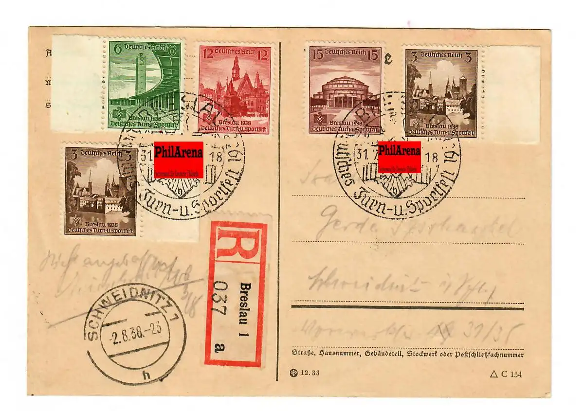 Turn- und Sportfest 1938 in Breslau, als Einschreiben nach Schweidnitz