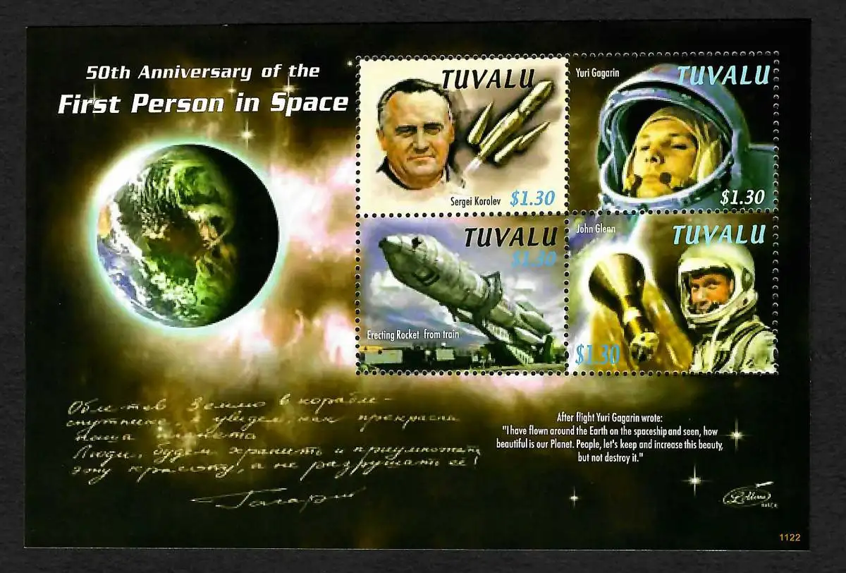 Tuvalu: 50. Aniversary of teh First Person in Space, postfrisch **