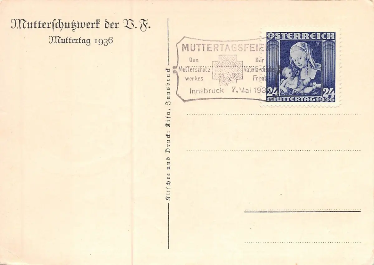 Tyrol Mutterschutzwerk Muttertag 1936 Innsbruck Postkarte AK