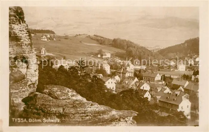 Tyssa Panorama Boehmische Schweiz Felsen Tyssa postalisch gelaufen 1935 Erhaltung siehe scans [FriedD77] Frierer