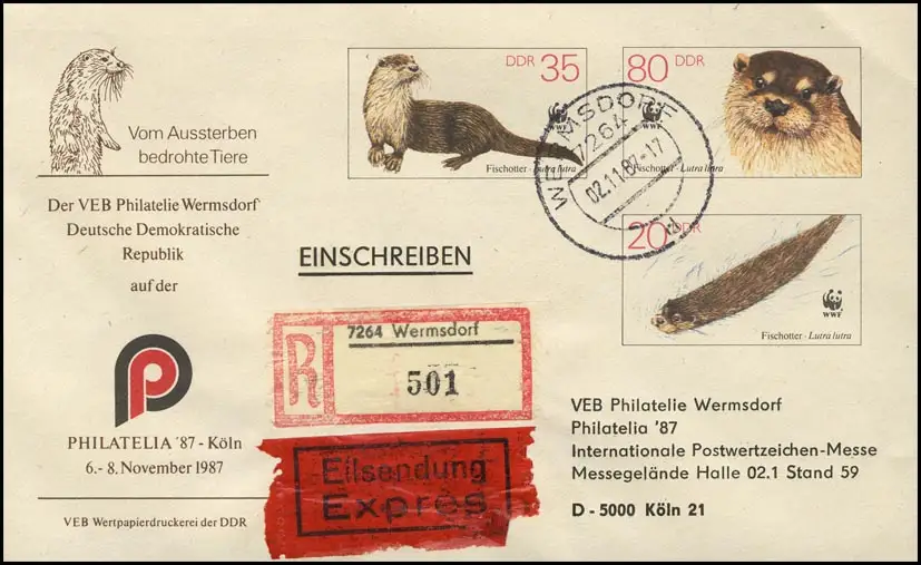 U 7 Naturschutz WWF Fischotter 1987, Zudruck Köln, Wermsdorf-Brief