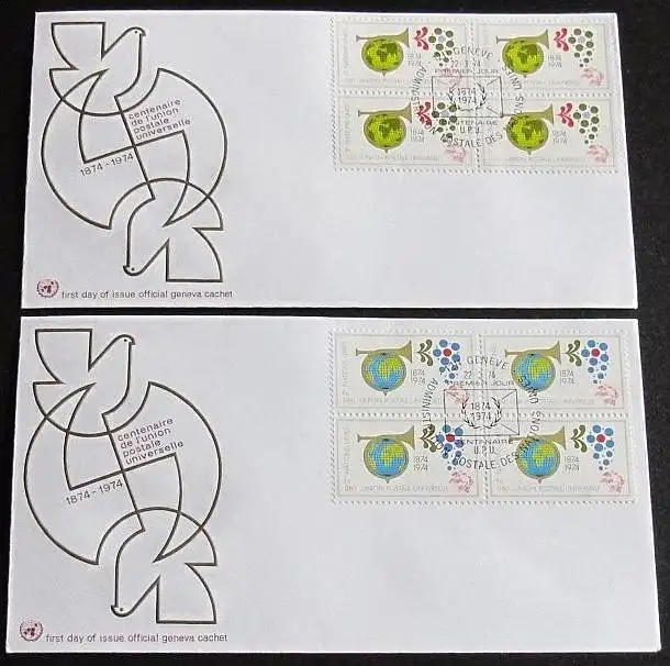 UNO GENF 1974 Mi-Nr. 39/40 Viererblock FDC