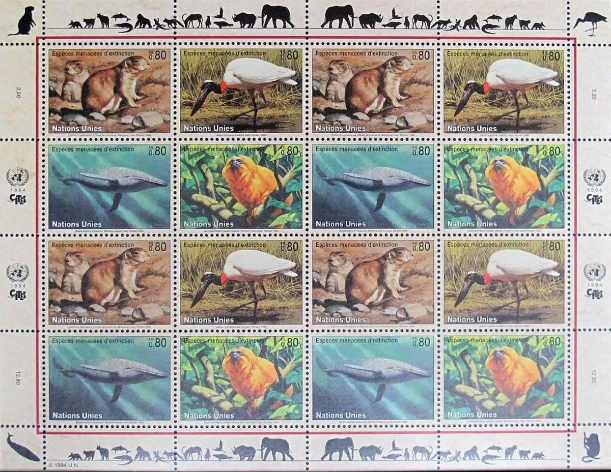 UNO GENF 1994 Mi-Nr. 245/48 Kleinbogen gefährdete Arten ** MNH