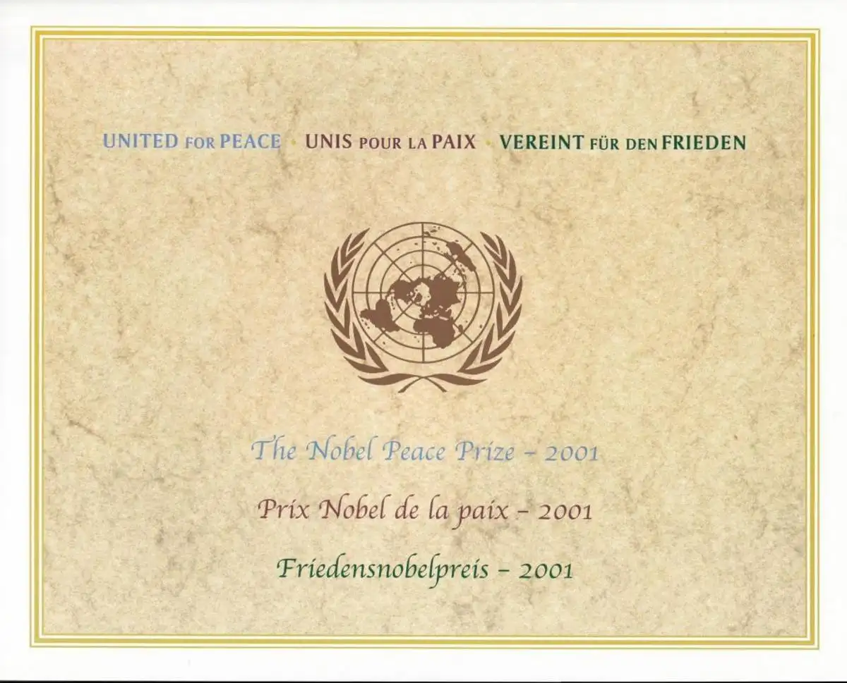 UNO GENF 2001 Mi-Nr. 432 Kleinbogen ** MNH in Mappe/Folder mit Fotodruck