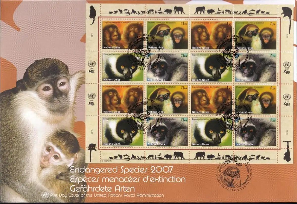 UNO GENF 2007 Mi-Nr. 561/64 Kleinbogen gefährdete Arten FDC