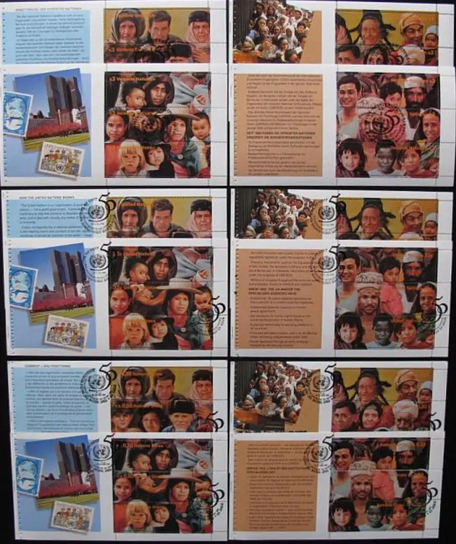 UNO GENF WIEN und NEW YORK 1995 Mi-Nr. je 1 Heftchenblatt 1/4 o used