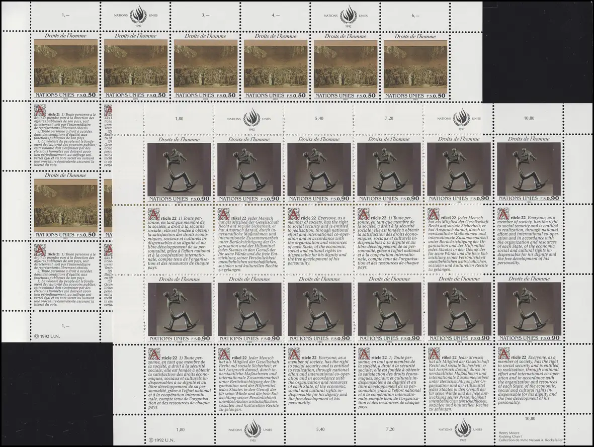 UNO Genf 223-224 Erklärung der Menschenrechte IV 1992 ZD-Bogensatz **