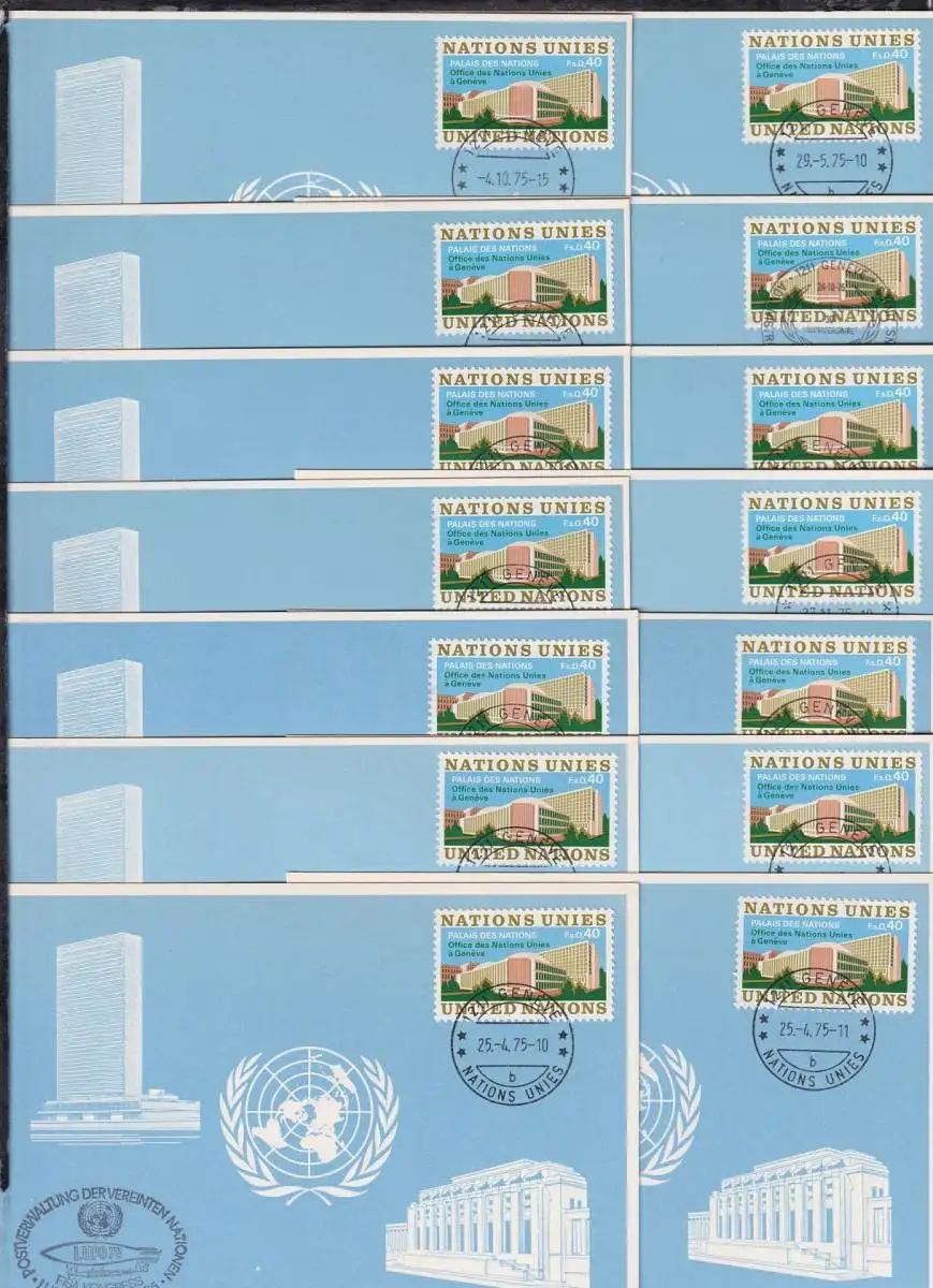 UNO Genf "Blaue Karten" Jahrgang 1975 kpl. gestempelt #OD129