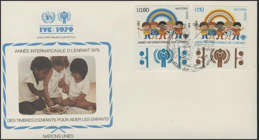 UNO Genf: Kinder verschiedener Nationen, 2 Werte auf Schmuck-FDC Ernährung
