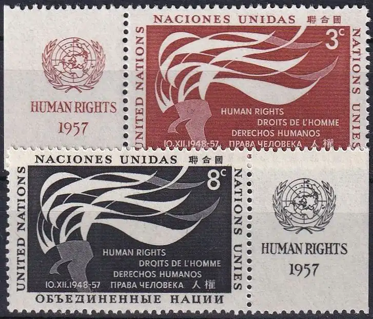 UNO NEW YORK 1957 Mi-Nr. 64/65 TAB ** MNH