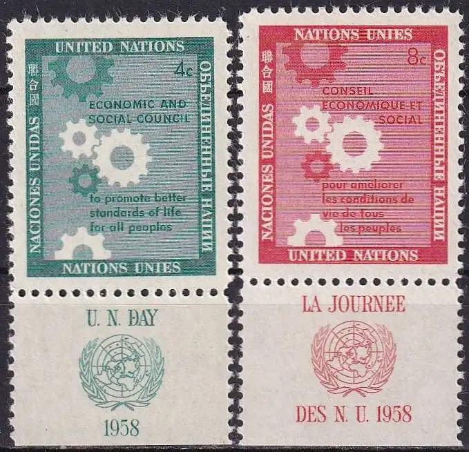 UNO NEW YORK 1958 Mi-Nr. 72/73 TAB ** MNH