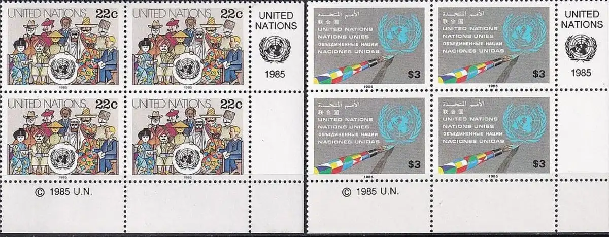 UNO NEW YORK 1985 Mi-Nr. 468/69 Eckrand-Viererblocks ** MNH