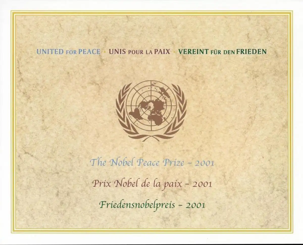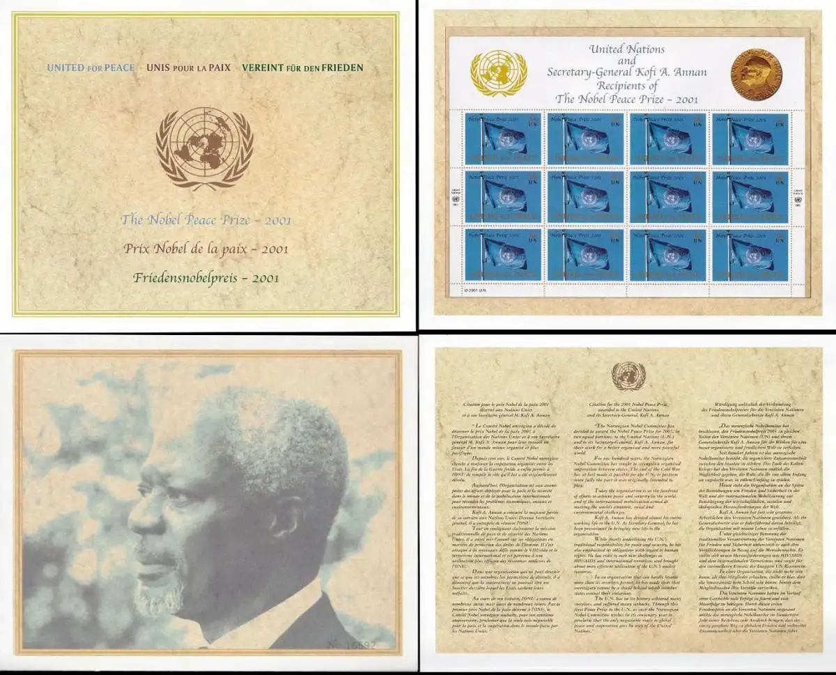 UNO NEW YORK 2001 Mi-Nr. 888 Kleinbogen ** MNH in Mappe/Folder mit Fotodruck