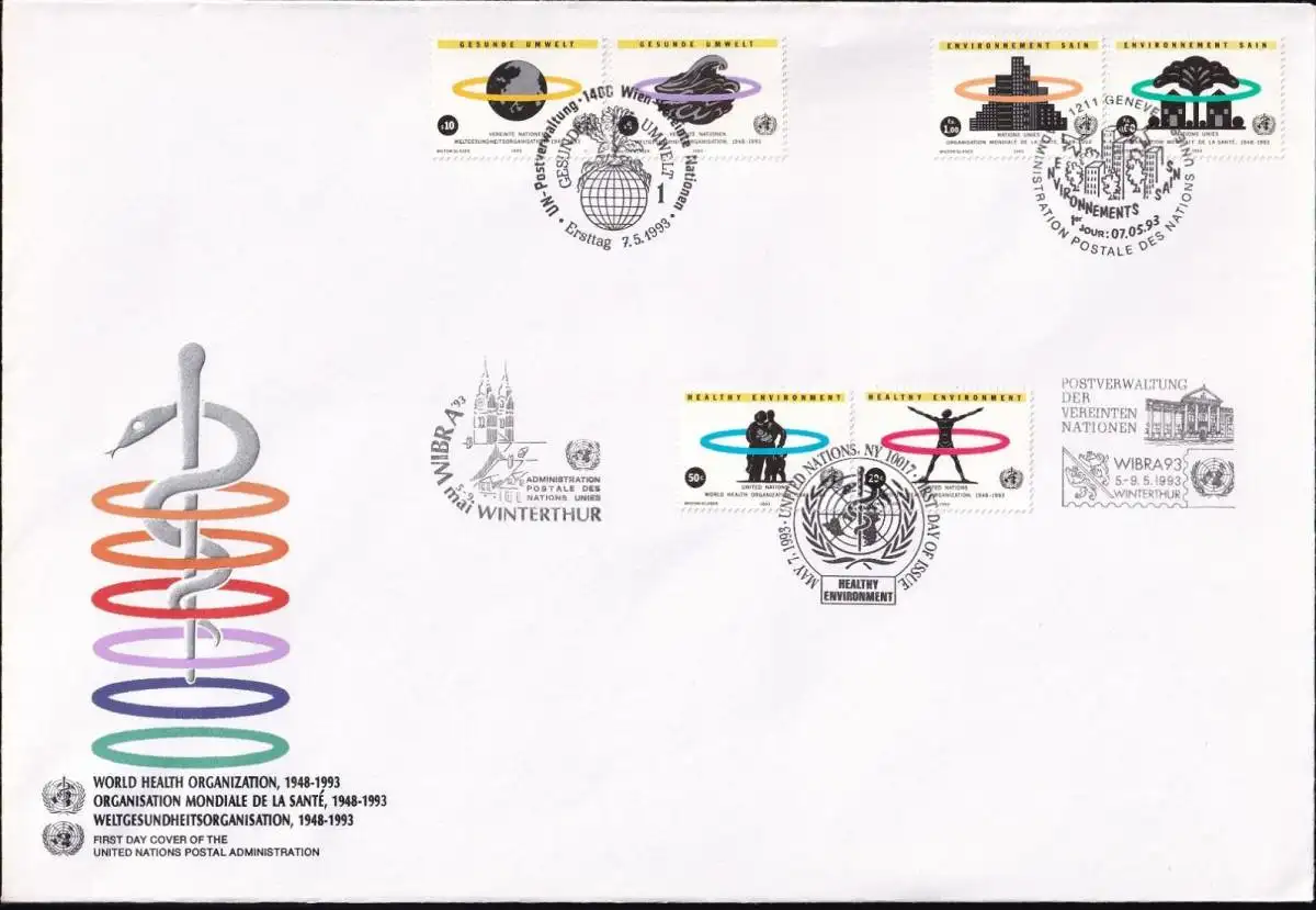UNO NEW YORK - WIEN - GENF 1993 TRIO-FDC Weltgesundheitsorganisation