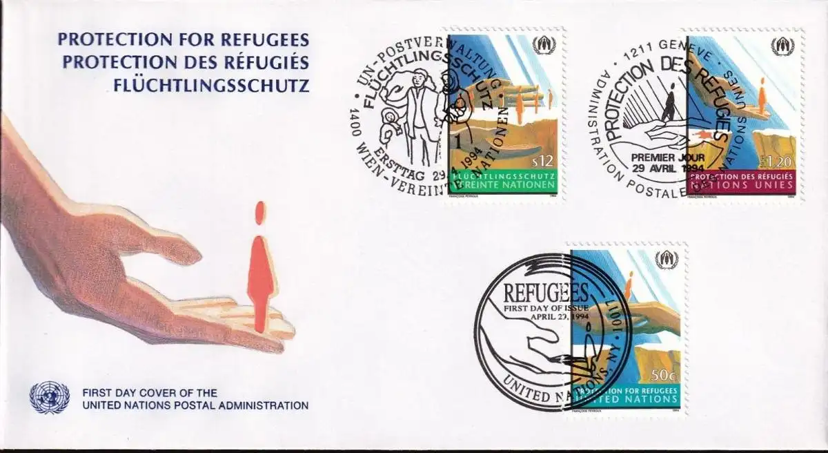 UNO NEW YORK - WIEN - GENF 1994 TRIO-FDC Flüchtlingsschutz