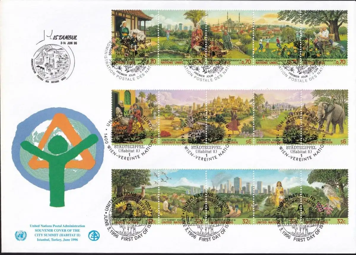 UNO NEW YORK - WIEN - GENF 1996 TRIO-FDC Städtegipfel + Stempel Istanbul