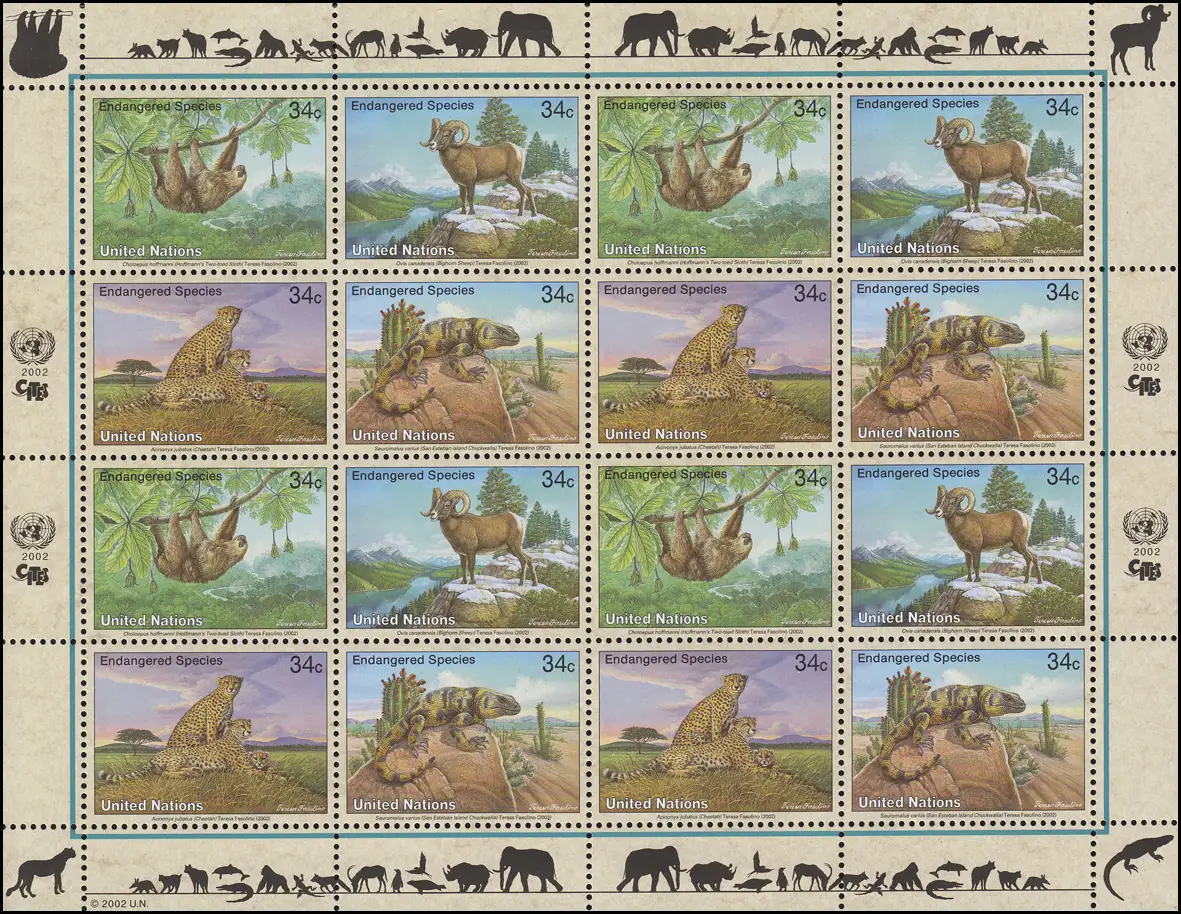 UNO New York 890-893 Gefährdete Arten X - Fauna 2002, ZD-Bogen **