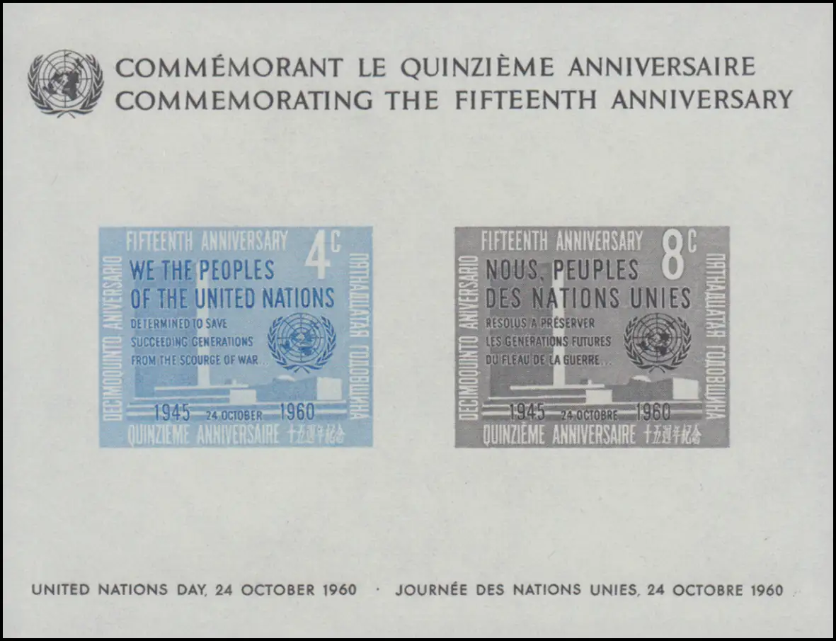 UNO New York Block 2 Jubiläum 15 Jahre Vereinte Nationen (UNO) 1960, **