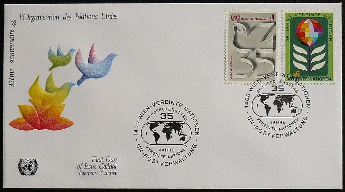 UNO WIEN 1980 Mi-Nr. 12/13 A FDC
