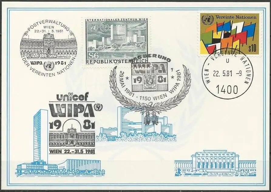 UNO WIEN 1981 Mi-Nr. 13 WEISSE KARTE - WIEN MISCHFRANKATUR 22.05.1981