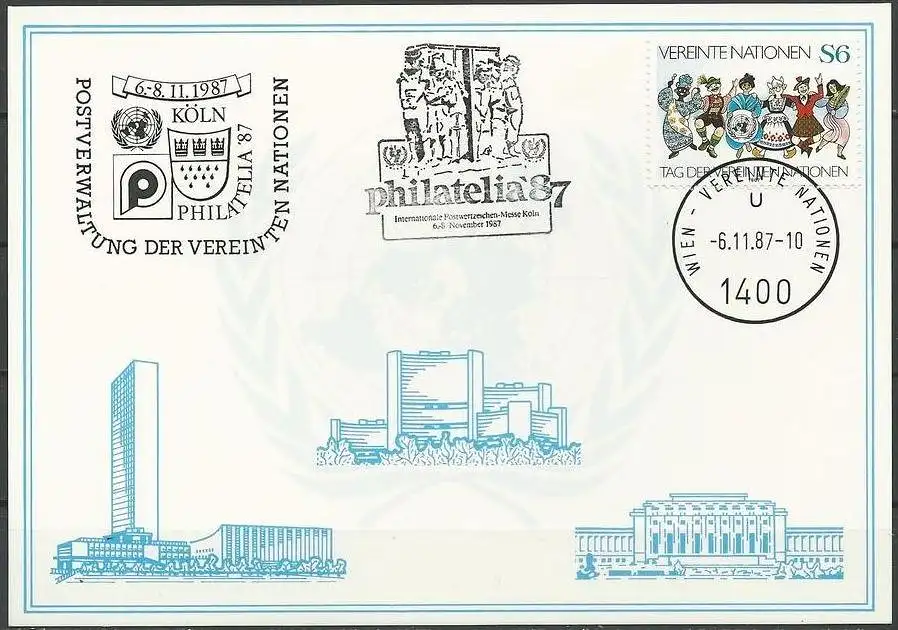 UNO WIEN 1987 Mi-Nr. 70 WEISSE KARTE - PHILATELIA KÖLN 06.11.1987