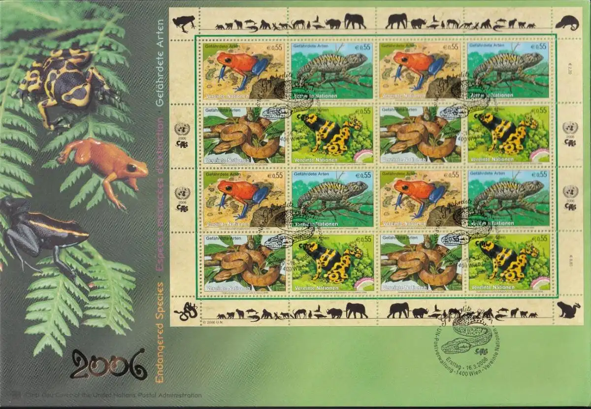 UNO WIEN 2006 Mi-Nr. 461/64 FDC Kleinbogen gefährdete Arten
