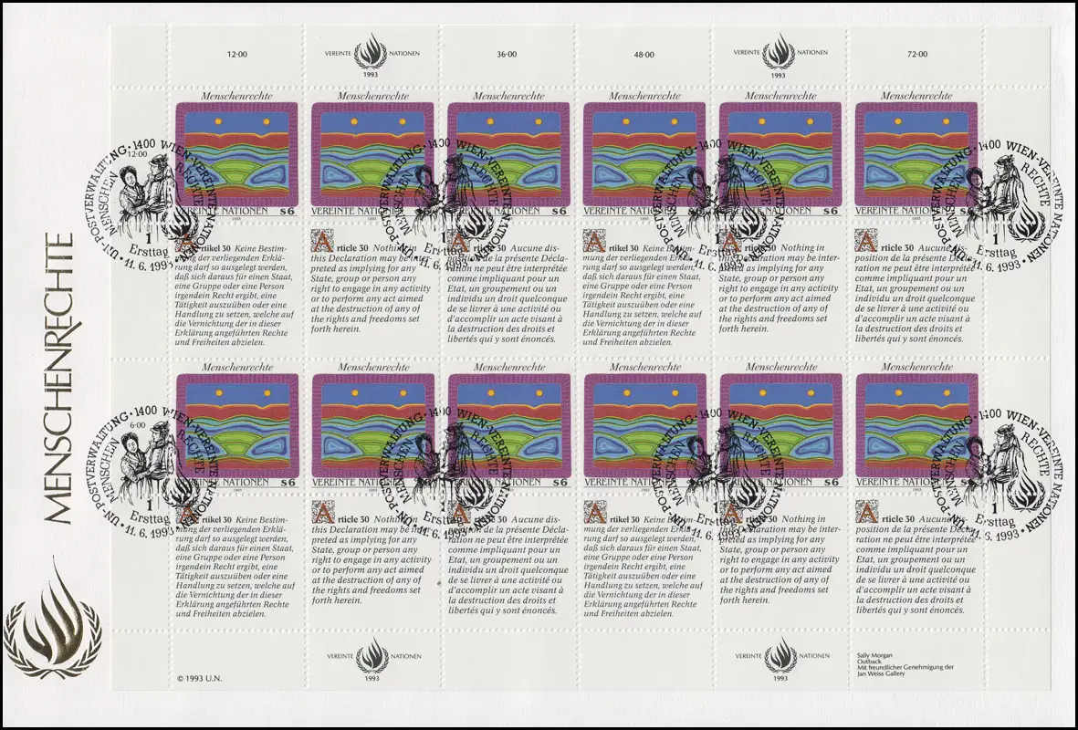 UNO Wien 510-151 Menschenrechte, Kleinbogen-Satz auf 2 Schmuck-FDC WIEN 1993