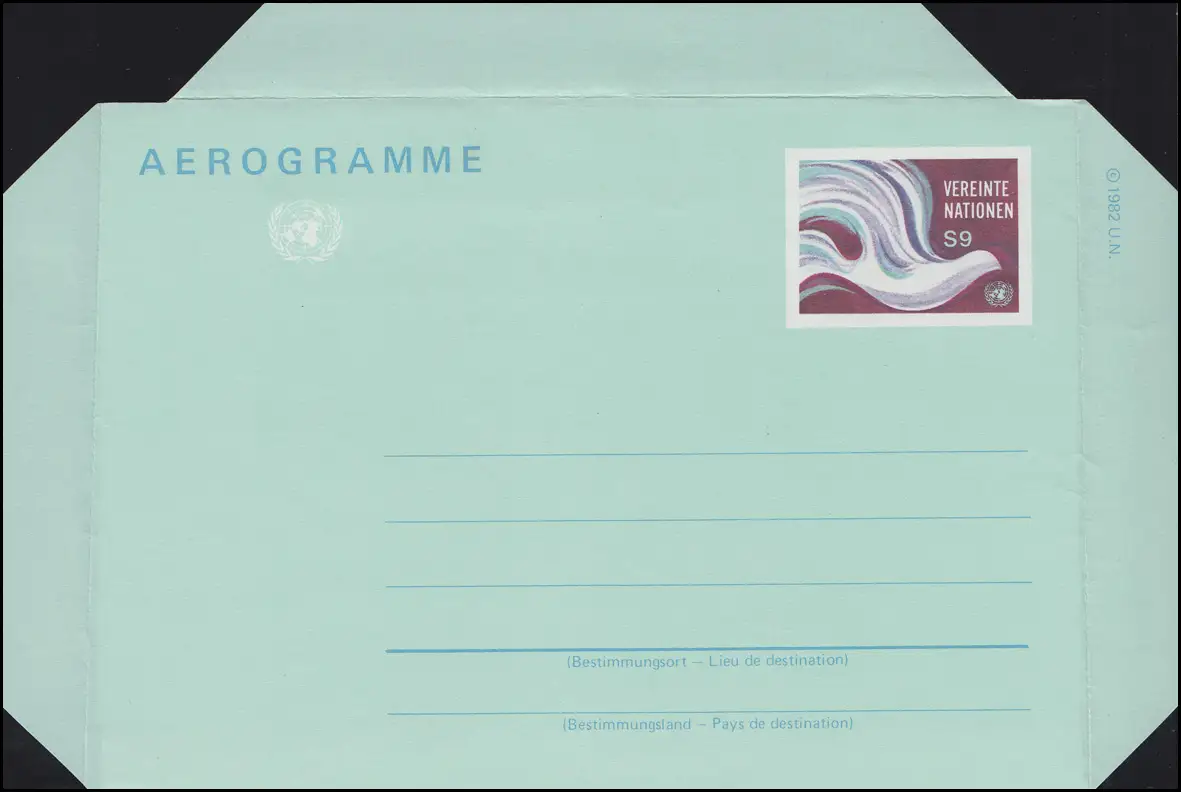 UNO Wien Luftpostfaltbrief LF 1 Friedenstaube 9 Schilling 1982, ungebraucht **