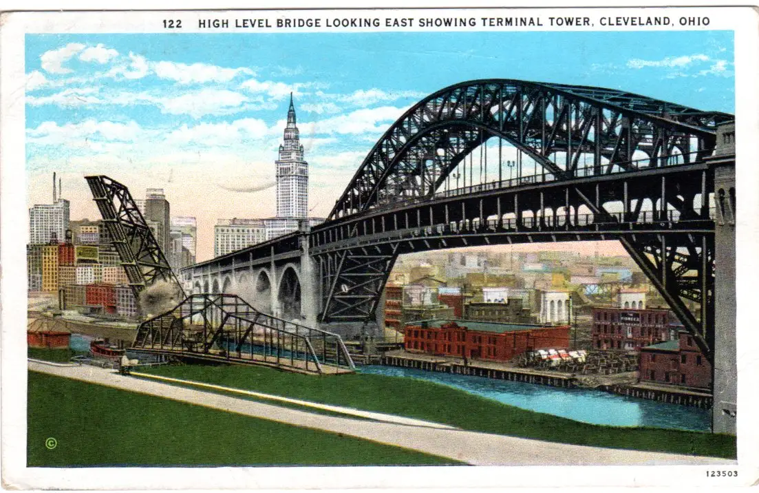 Cleveland Farb-AK m. Luftpostbestätigungsstpl. v. Düsseldorf.