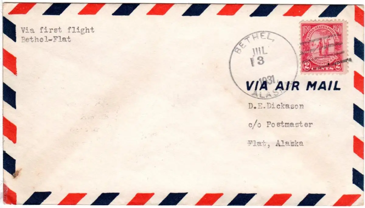 USA 1931, 2 C. auf Alaska 1st Flight Brief Bethel-Flat