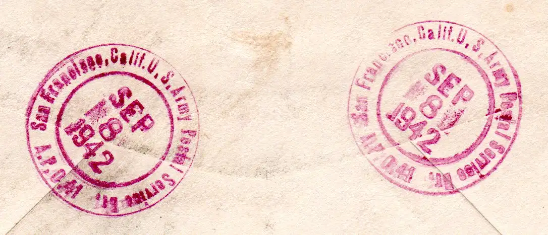 USA 1942, 3 Marken auf Army Postal Service Reko Zensur Brief v. San Francisco