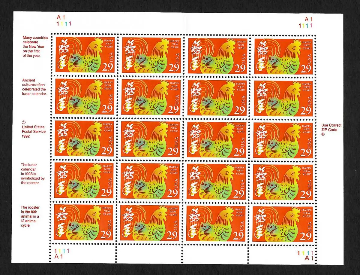 USA 1992: Happy new year, Year of the Rooster, #2335, mnh
