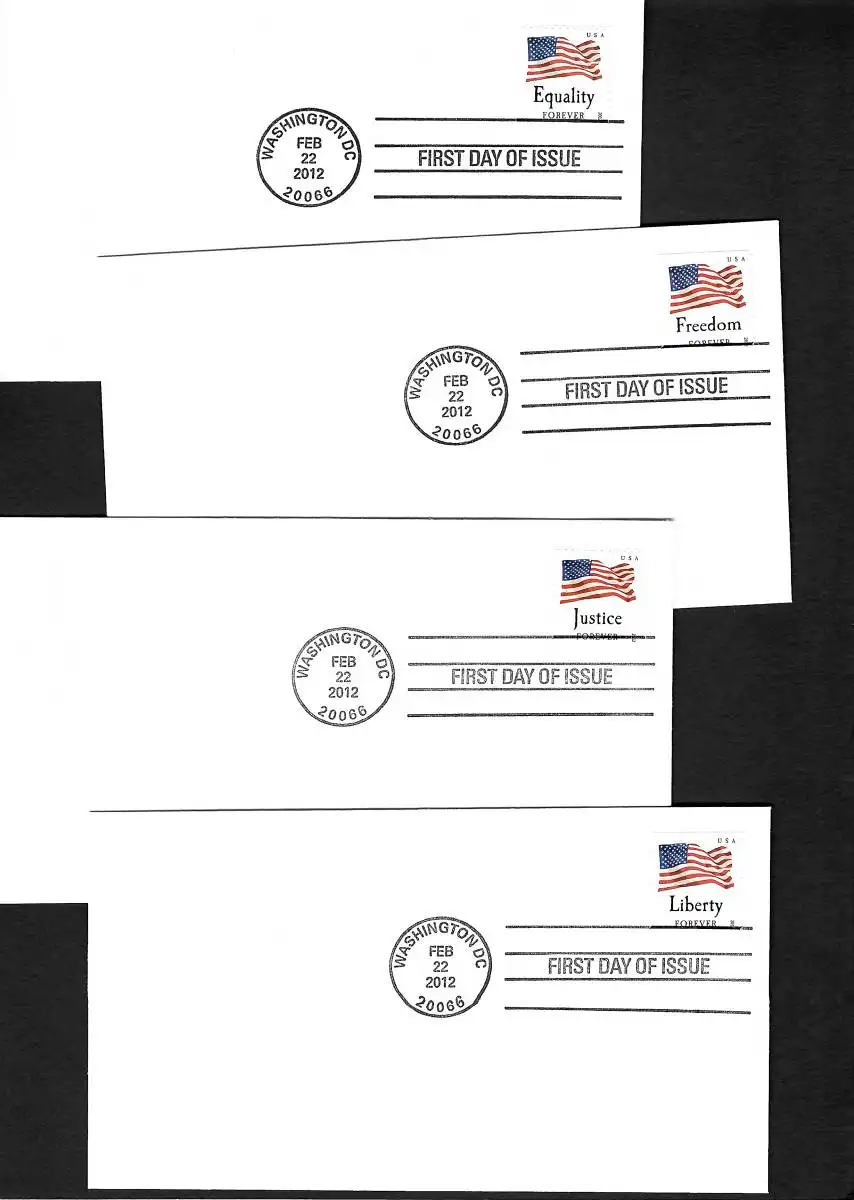 USA: 4x FDC mit Flagen: Freedom/Equality/Justice/Liberty