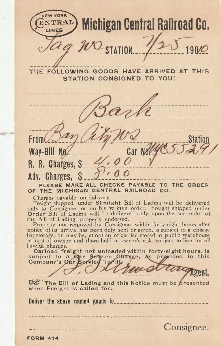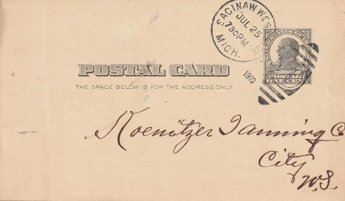 USA - POSTAL STATIONERY 1910, Michigan Central Railway Co.