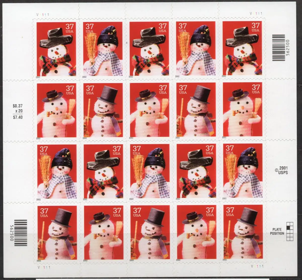 USA, Mi-Nr. 3707 - 3710 BA **, selbstklebend, 5x kompl. auf Folienblatt, Weihnachten 2002