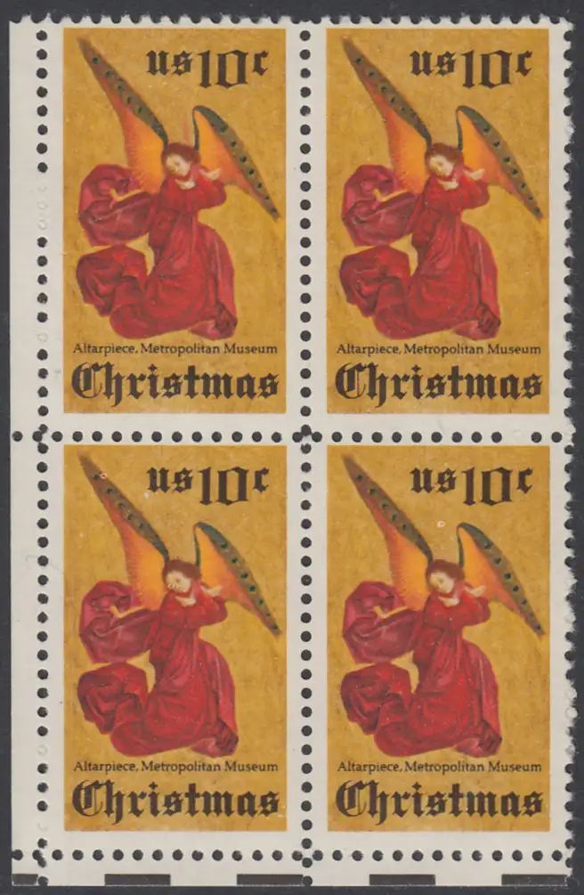 USA Michel 1160 / Scott 1550 postfrisch BLOCK ECKRAND unten links - Weihnachten; Engel, Altarbild eines unbekannten französischen Meisters
