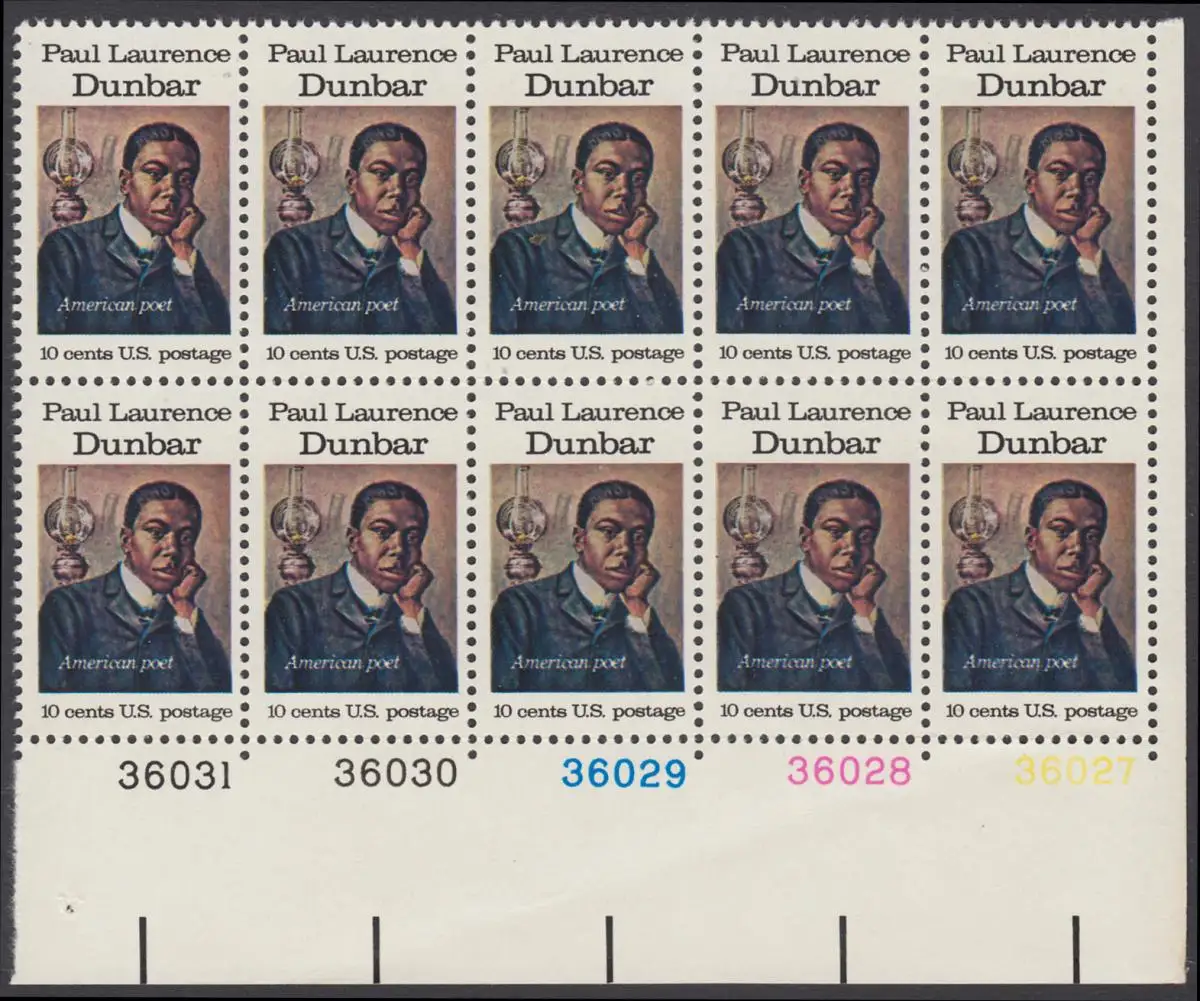 USA Michel 1163 / Scott 1553 postfrisch horiz.PLATEBLOCK(10) ECKRAND unten rechts m/ Platten-# 35384 - Amerikanische Künstler: Benjamin West, Maler