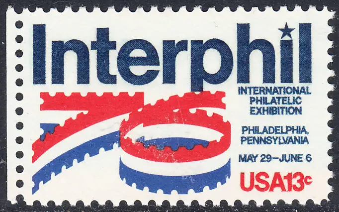 USA Michel 1202 / Scott 1632 postfrisch EINZELMARKE RAND links (a1) - Internationale Briefmarkenausstellung „Interphil“, Philadelphia