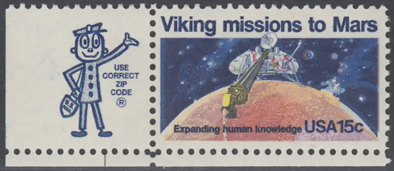 USA Michel 1356 / Scott 1759 postfrisch EINZELMARKE ECKRAND unten links m/ ZIP-Emblem - 2. Jahrestag der Landung von Viking I auf dem Planeten Mars