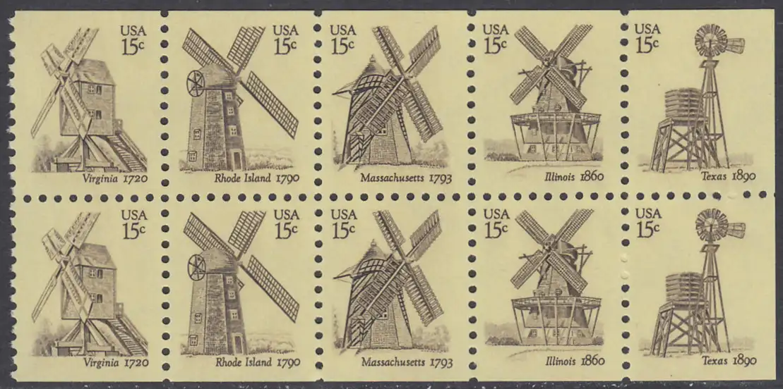 USA Michel 1415-1419 / Scott 1742a postfrisch Markenheftchenblatt(10 ) (a1) - Amerikanische Windmühlen