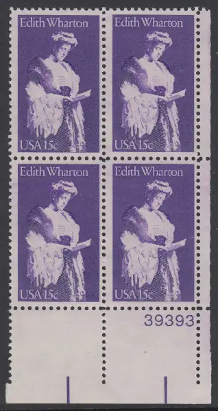 USA Michel 1439 / Scott 1832 postfrisch PLATEBLOCK ECKRAND unten rechts m/ Platten-# 39393 - Edith Wharton, Schriftstellerin
