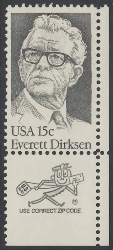 USA Michel 1455 / Scott 1874 postfrisch EINZELMARKE ECKRAND unten rechts m/ ZIP-Emblem (a2) - Everett Dirksen (1896-1969), Politiker